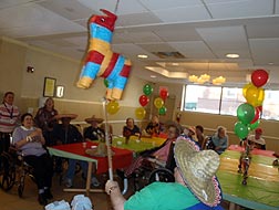Latin Fiesta – The Mariachi Band plays, while residents and staff wearing sombreros sip Margaritas, Daquiris and Mojitos. The afternoon culminates with the breaking open of a candy filled pinata. Once again Recreation Resources help transport residents to a tropical locale.