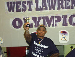 West Lawrence Care Center held their first Annual Olympics, with a Torch Lighting Ceremony, Wheelchair Races, Pie Eating, Shave a Balloon, Egg Toss and Award Presentation. Customized T-Shirts were worn by participants. As appeared in The Rockawave.